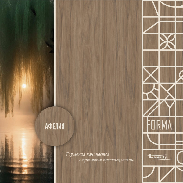 В тиснении «Рэйвуд» АФЕЛИЯ приобретает особую ощутимую красоту – её поверхность становится ещё более живой и тактильной, усиливая ощущение натуральности.
