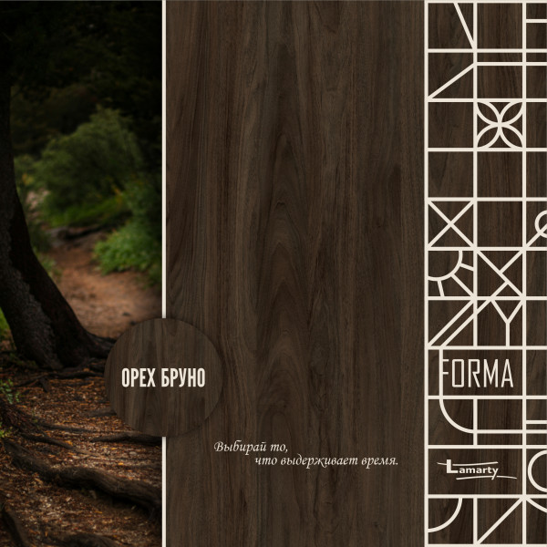 Это декор для тех, кто выбирает глубокие смыслы и вечные ценности. В его мягкой текучей текстуре заложена зрелая философия классической древесины ореха, лишённая вычурных акцентов и кричащих контрастов.