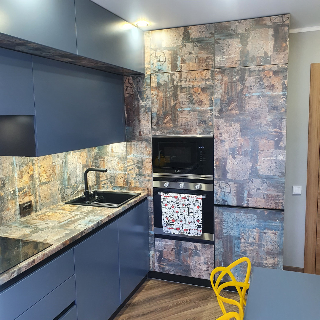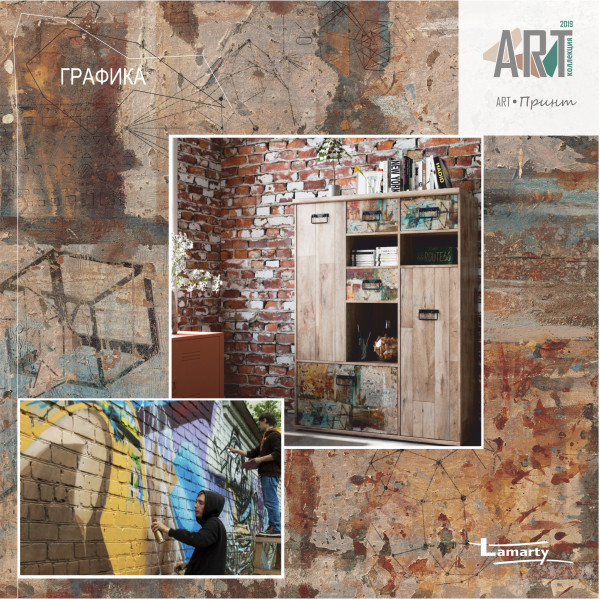 Беспорядок, царящий во время творческого процесса креативных людей в периоды вдохновения и посещения их музой. Именно такое настроение передает восхитительный декор в направлении искусства стрит-арт. Чёткая графика и беспорядочные цветные пряди и пятна в приглушённых пыльных тонах серого, бирюзового и кирпичного смотрятся смело и стильно, создавая максимально свободный яркий образ и бунтарский характер.