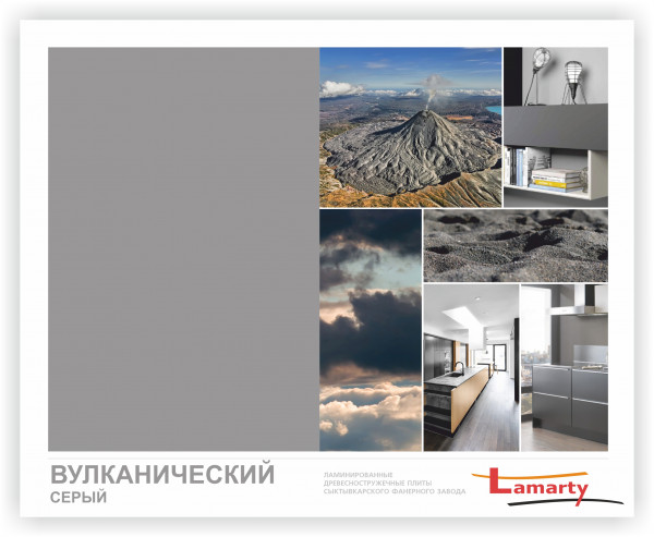 Оттенок, содержащий в себе глубокие серые тона, впитавшие образ вулканических скал и пепла. Он способен сбалансировать пространство с яркими акцентами и составить гармоничные композиции с классическими древесными декорами, придавая пространству легкую сдержанность.