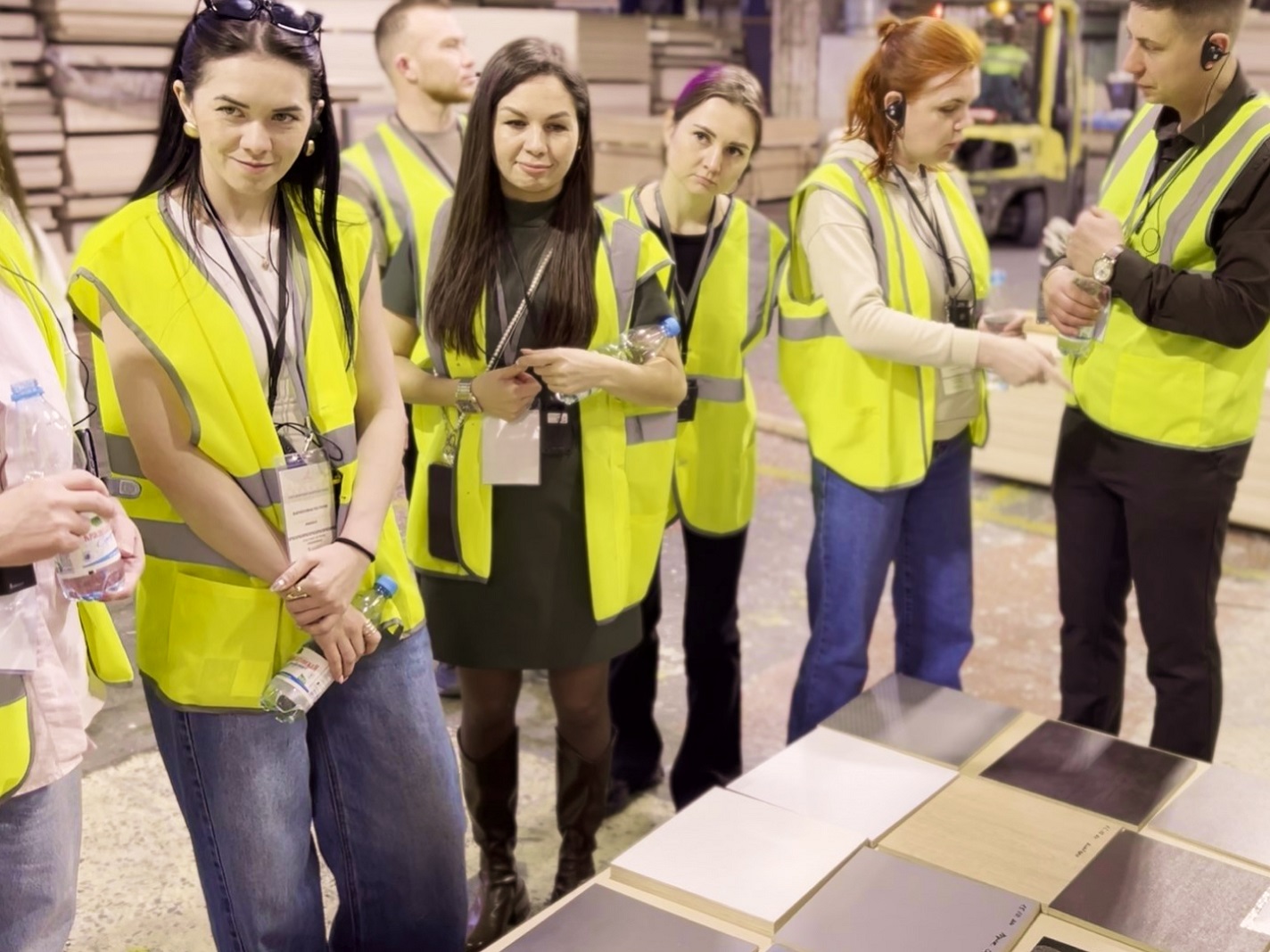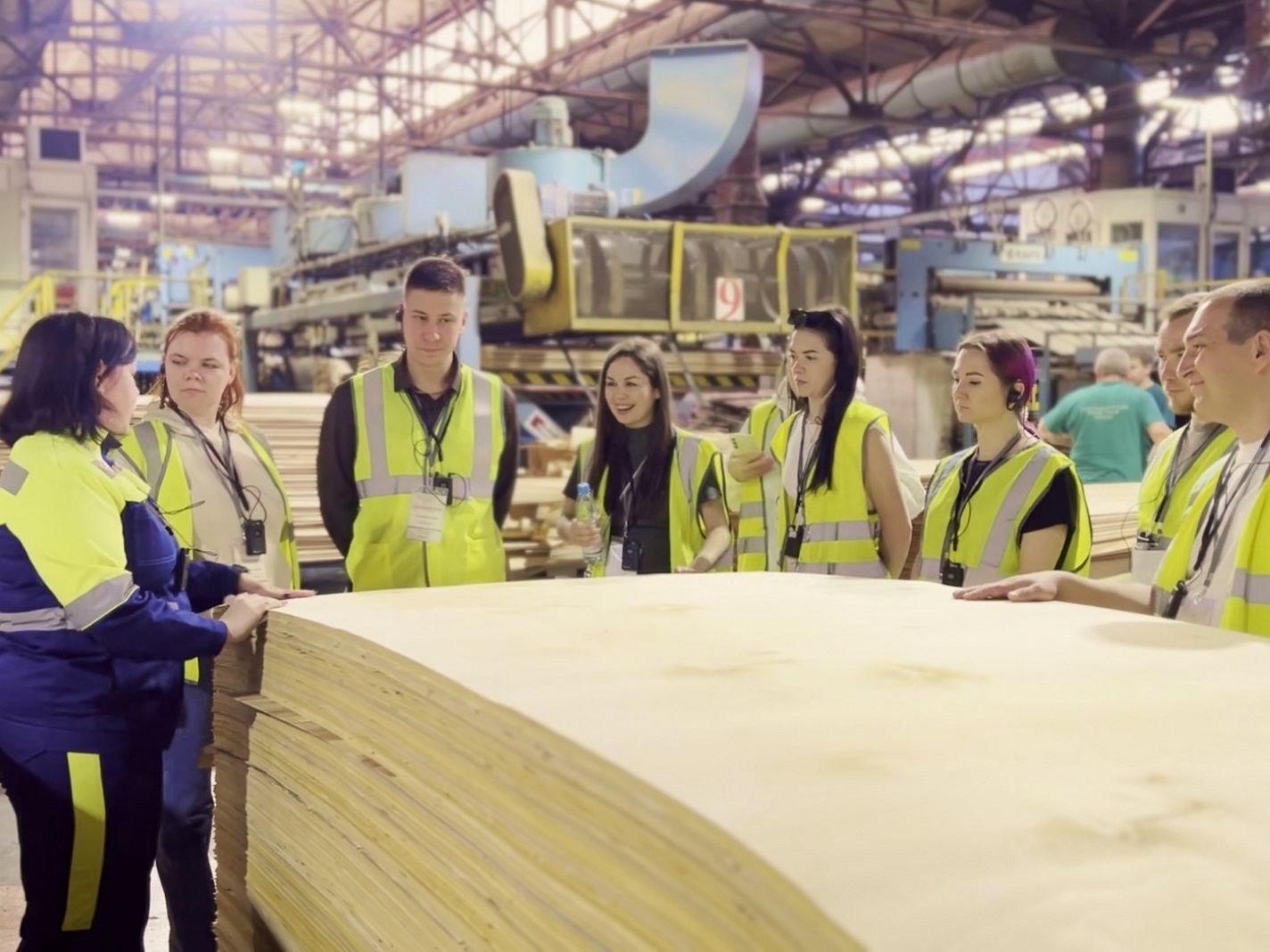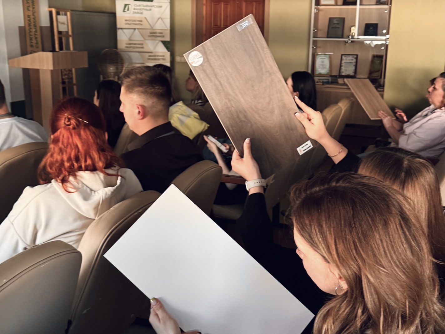 As part of the visit, the participants were given a detailed tour of the production workshops. The designers were able to see all the stages of creating plywood and chipboard, as well as get acquainted with the work of the laboratory where product quality control is carried out.