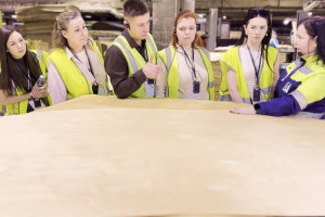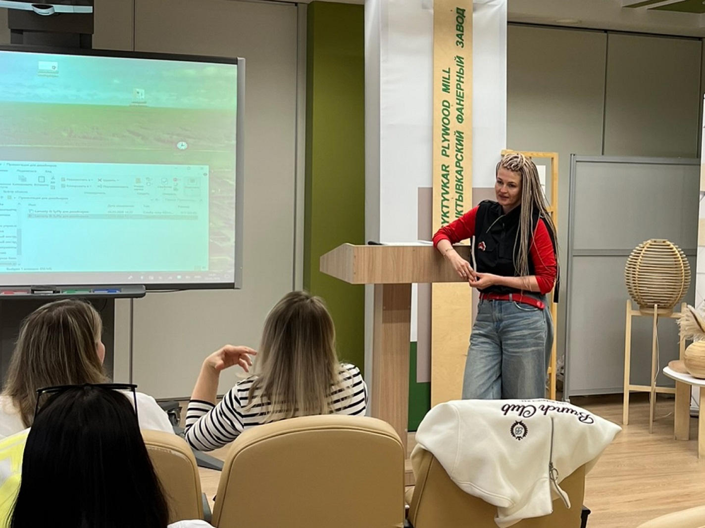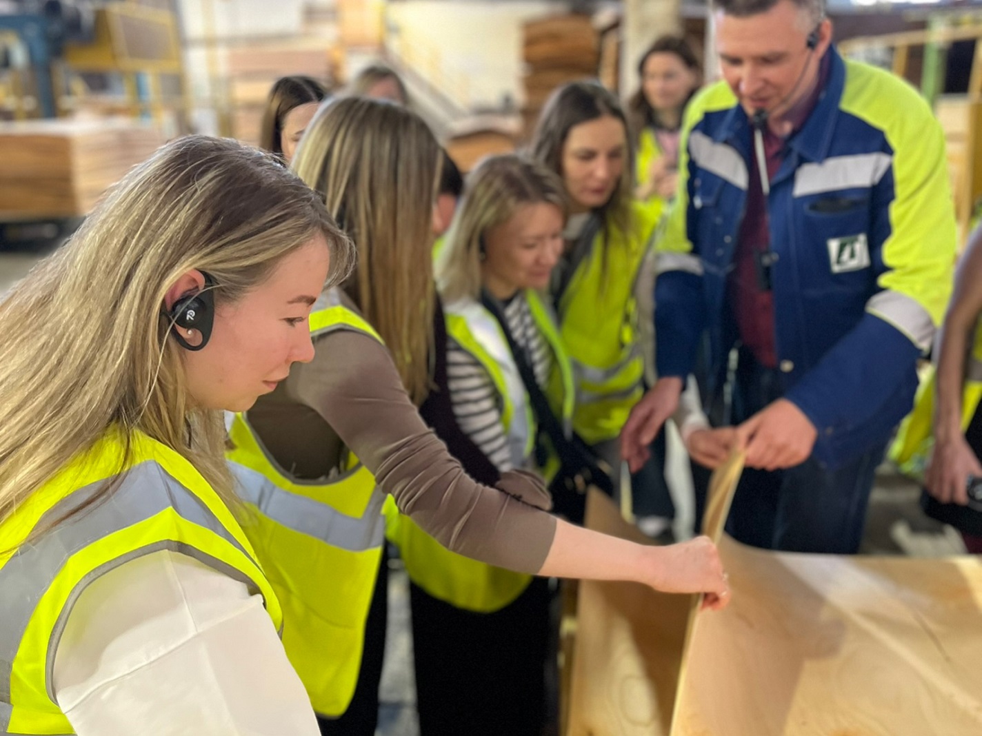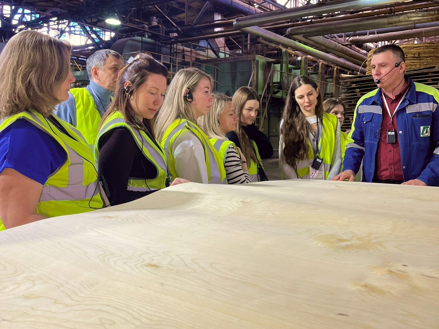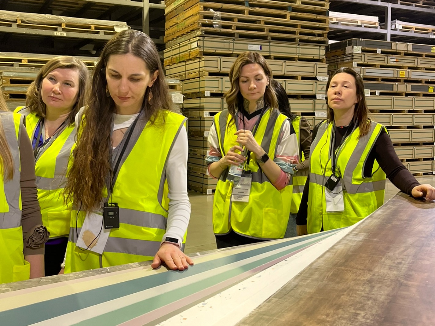 As part of the visit, the participants were given a detailed tour of the production workshops. The designers were able to see all the stages of creating plywood and chipboard, as well as get acquainted with the work of the laboratory where product quality control is carried out.