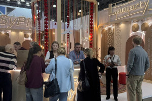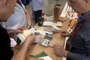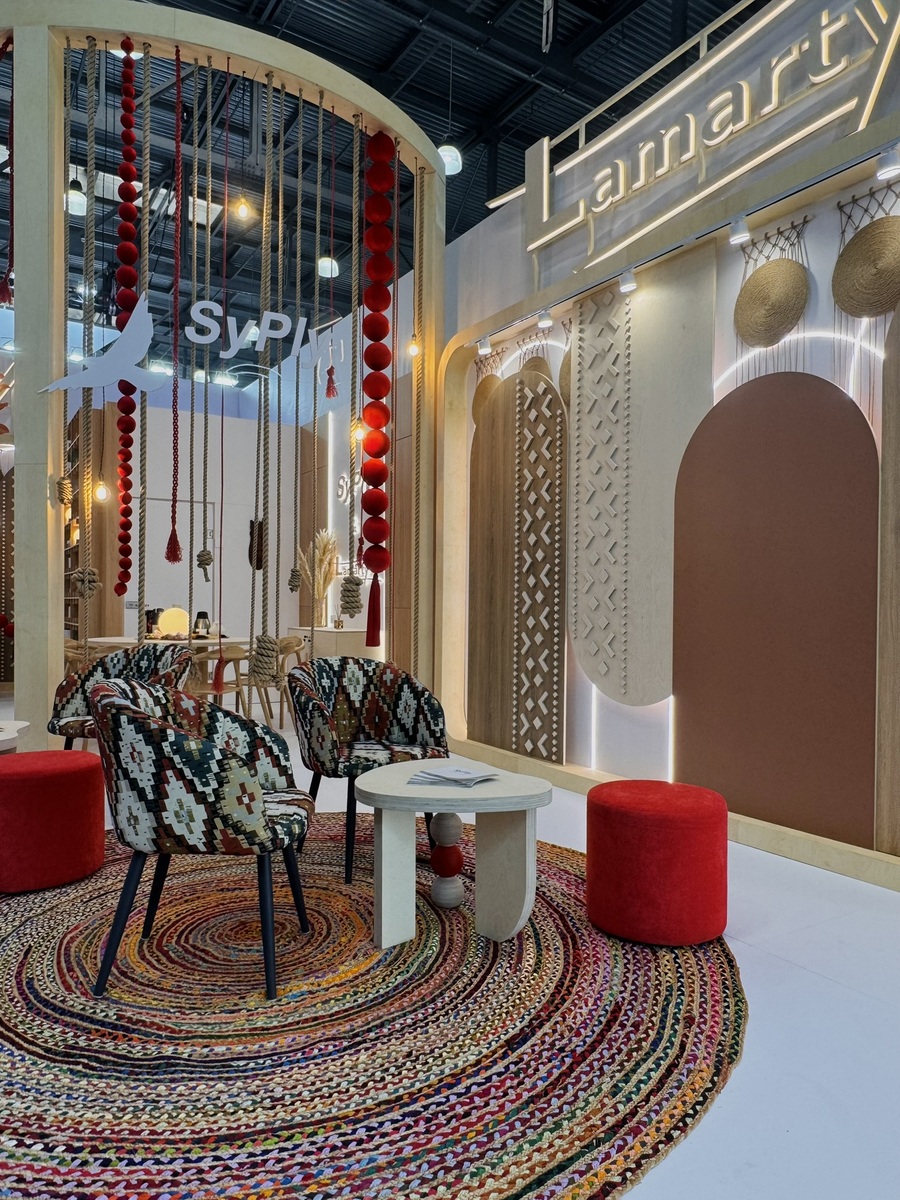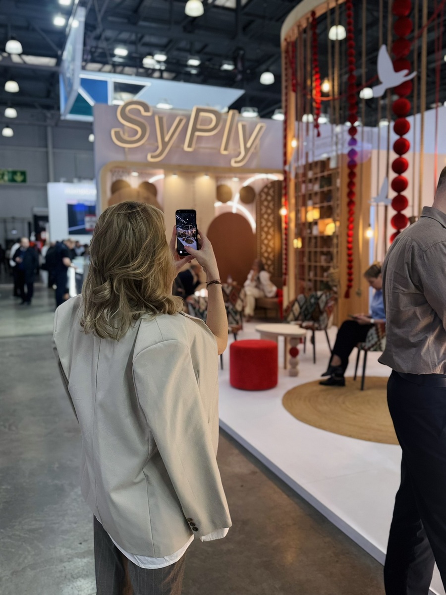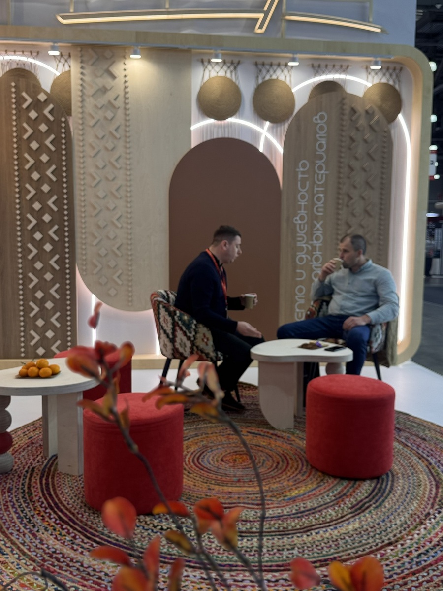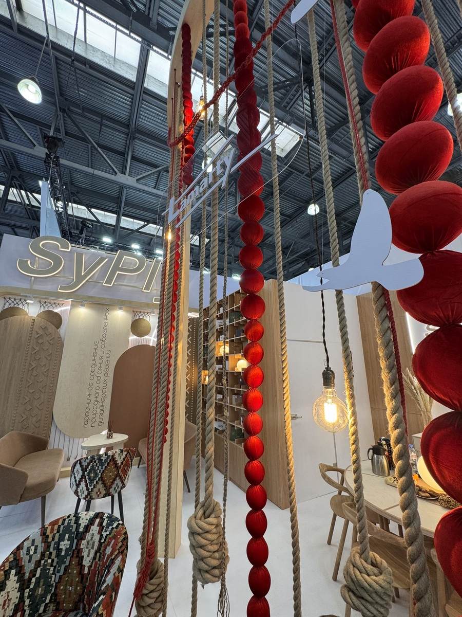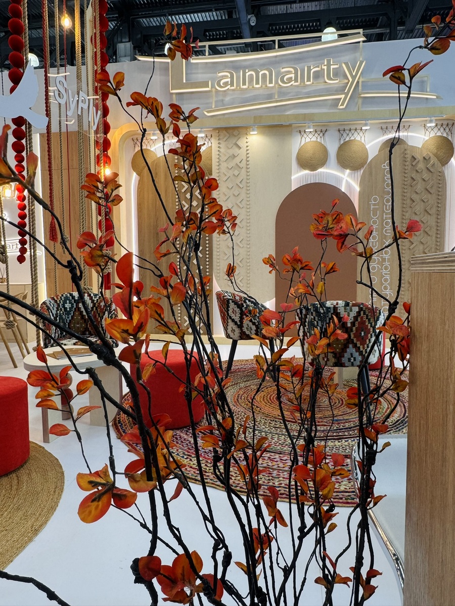 Сыктывкарский фанерный завод представил на выставке два ключевых бренда — SyPly и Lamarty. Концепция стенда была построена на идее переплетения материалов и решений: декоративные нити в оформлении символизировали взаимодействие разных типов материалов и их совместную работу в реальных проектах — от конструкционных задач до декоративных.