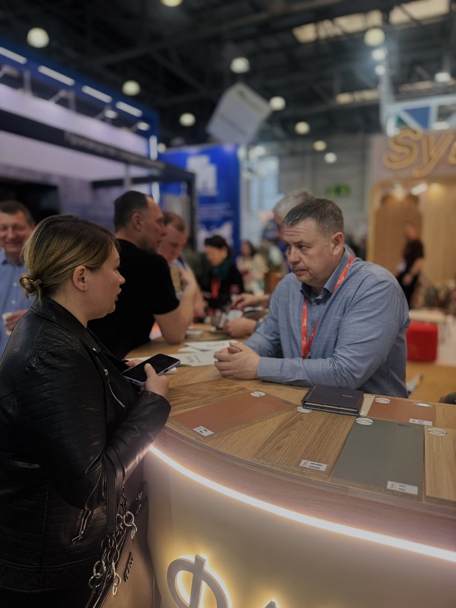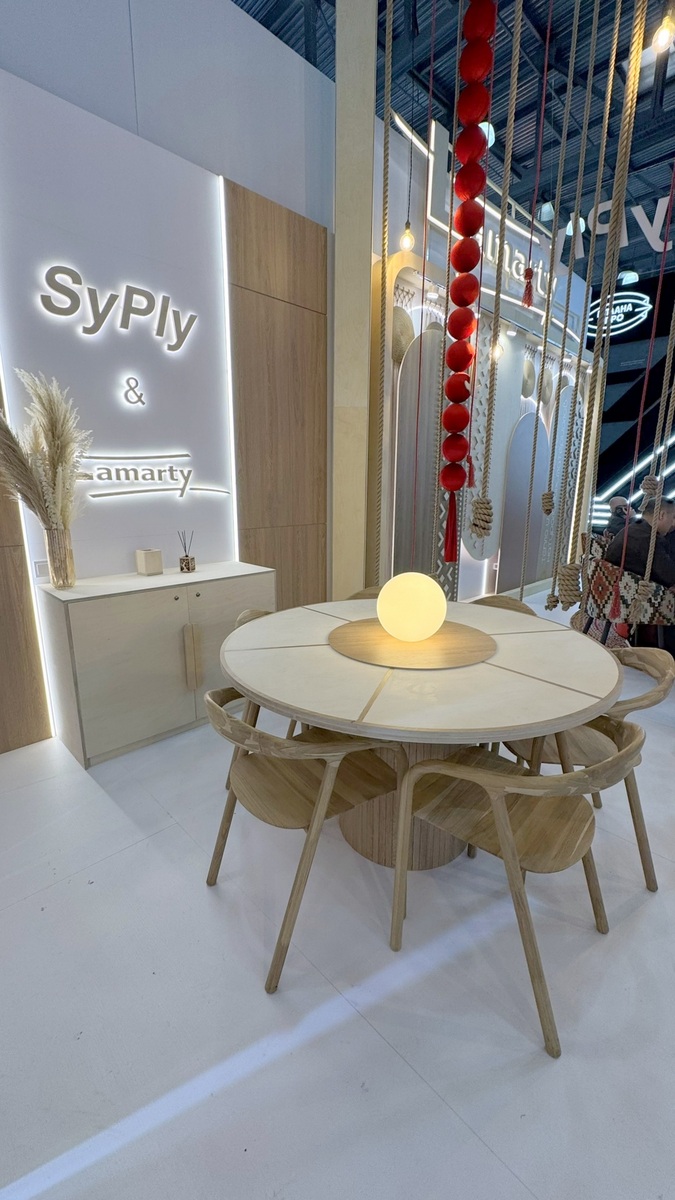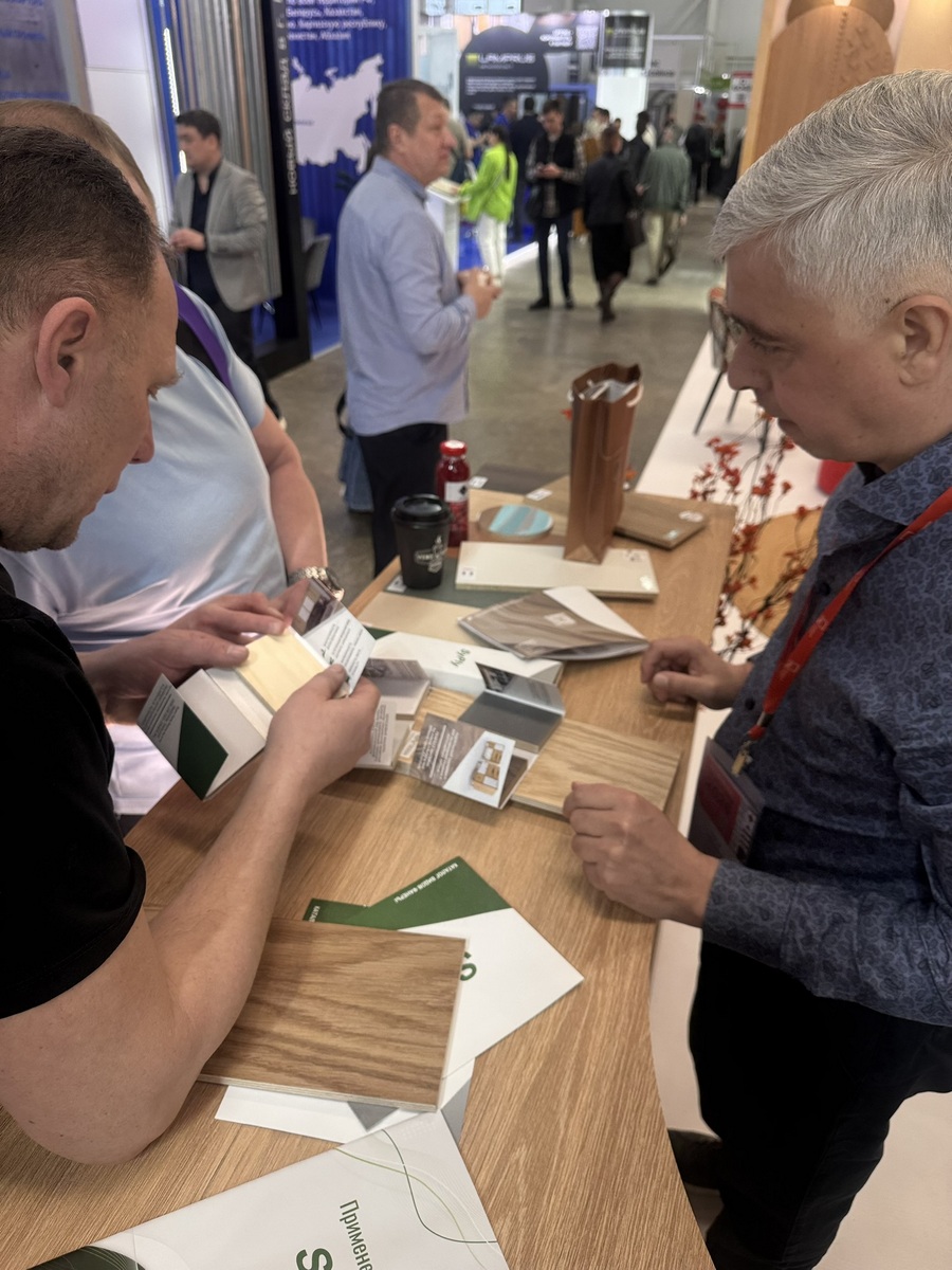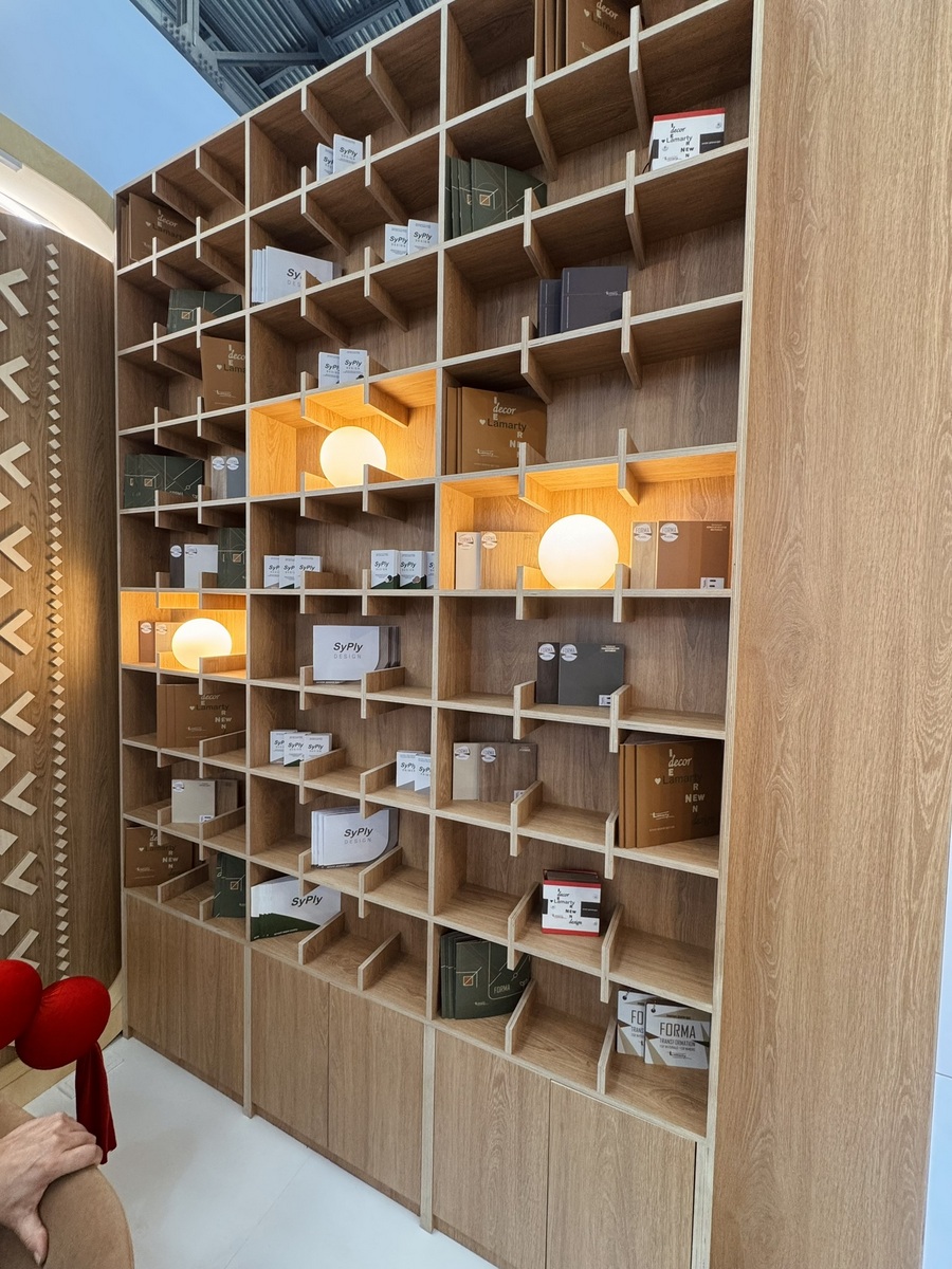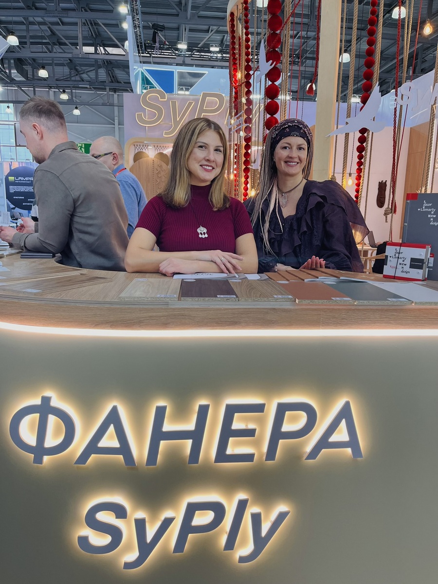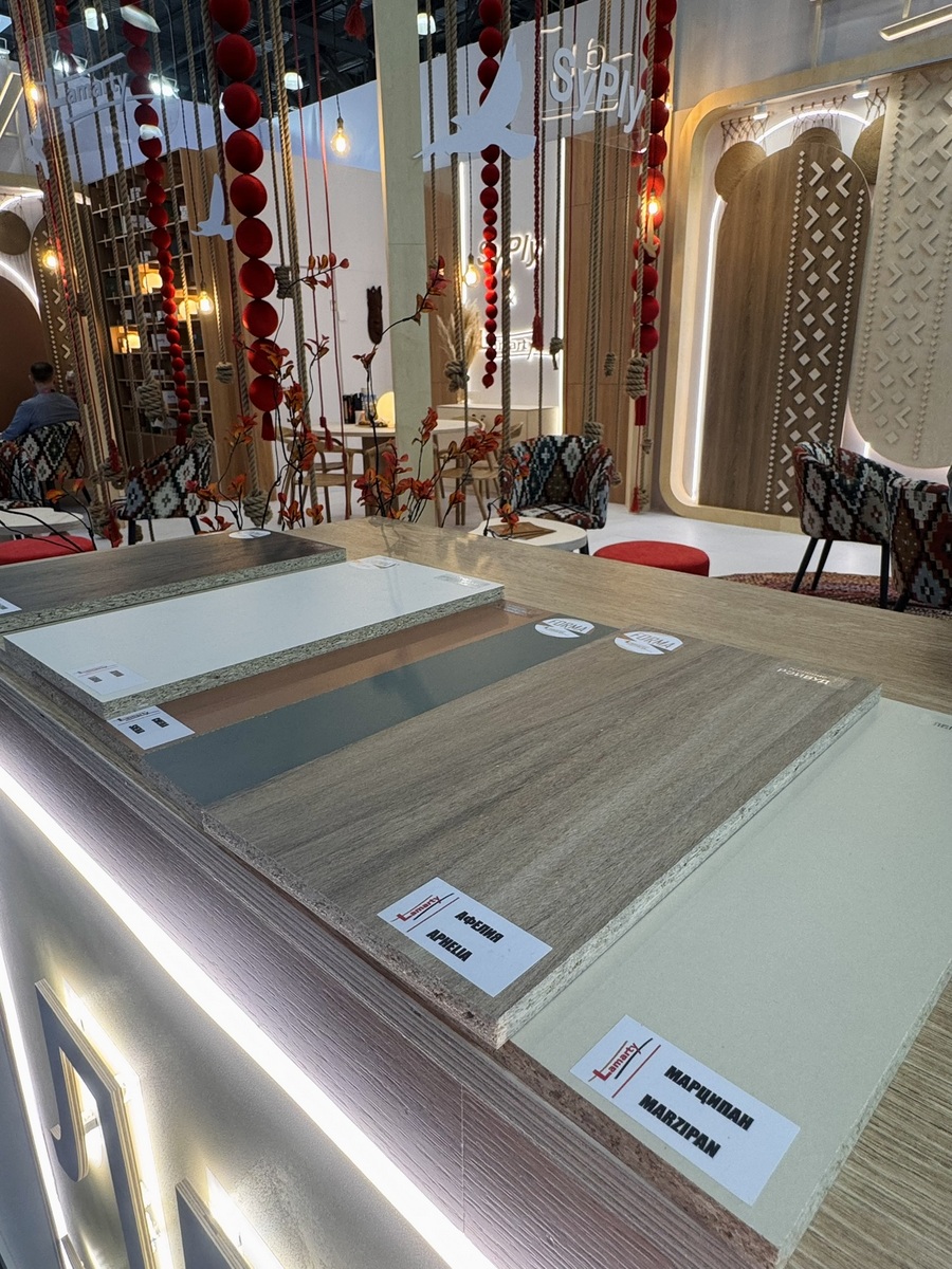 Мы продемонстрировали высокопрочную берёзовую фанеру SyPly, востребованную как в конструкционных задачах, так и в интерьерных решениях. Также представили декоры Lamarty для мебели, сделав акцент на коллекции FORMA — современных решениях, отражающих актуальные тренды дизайна.