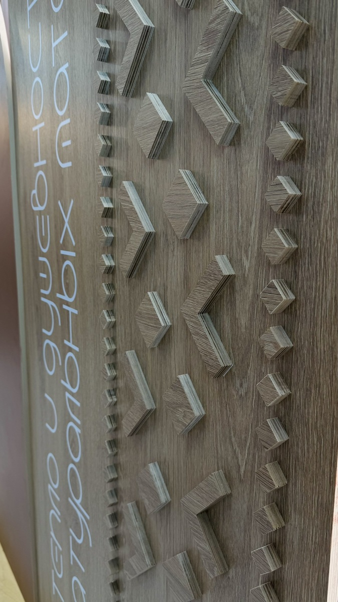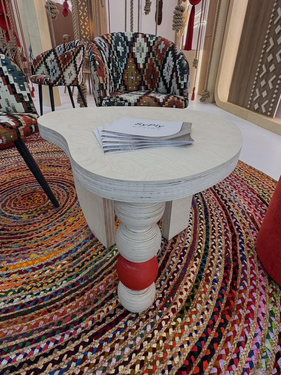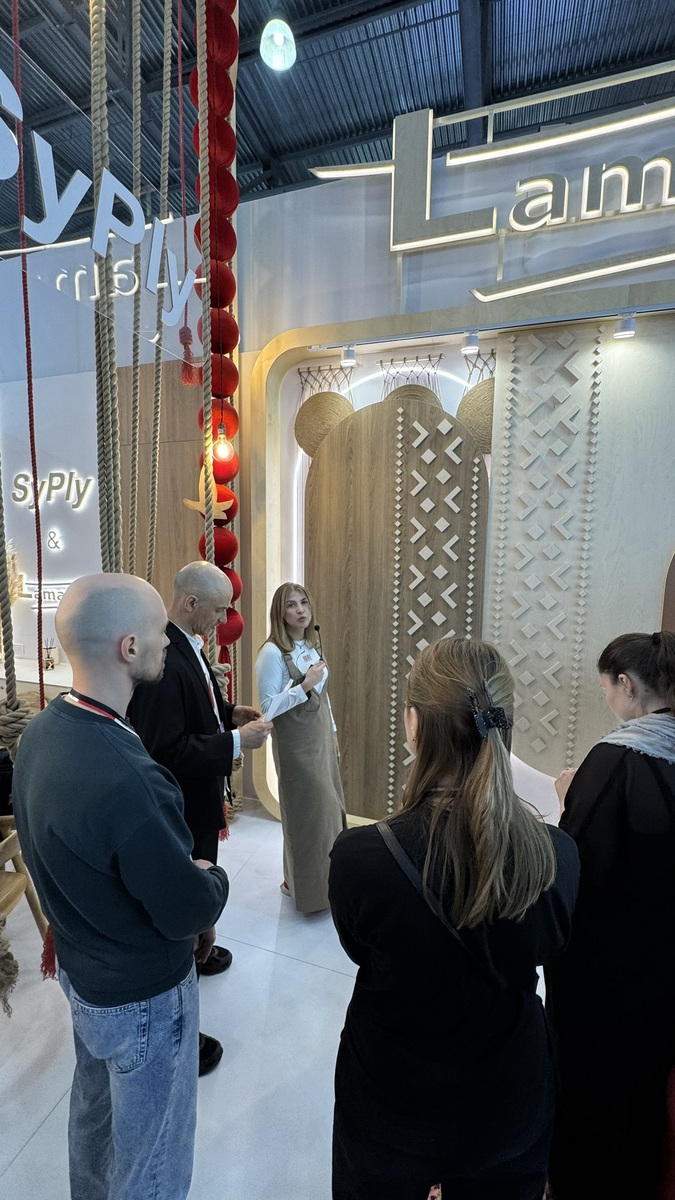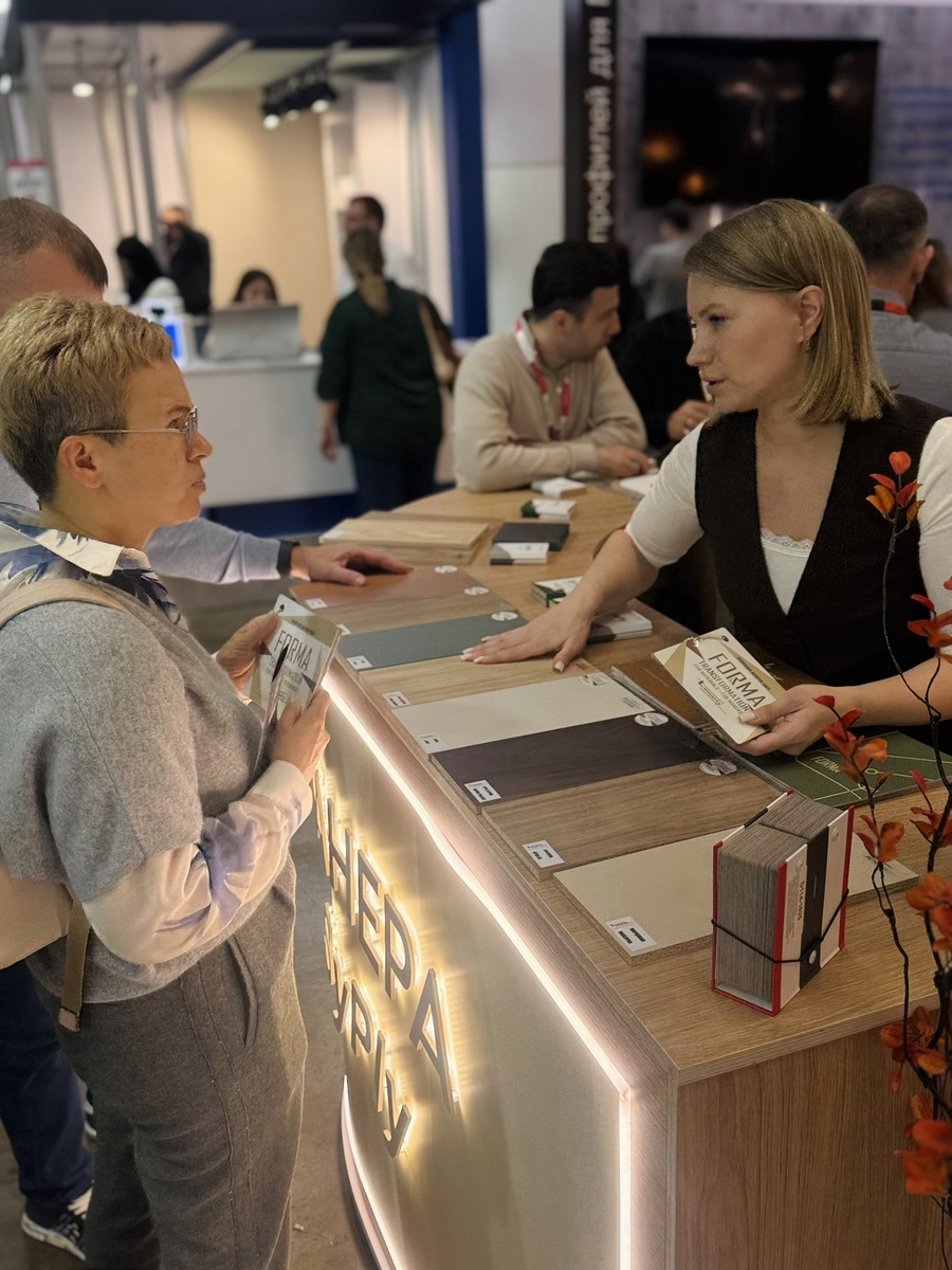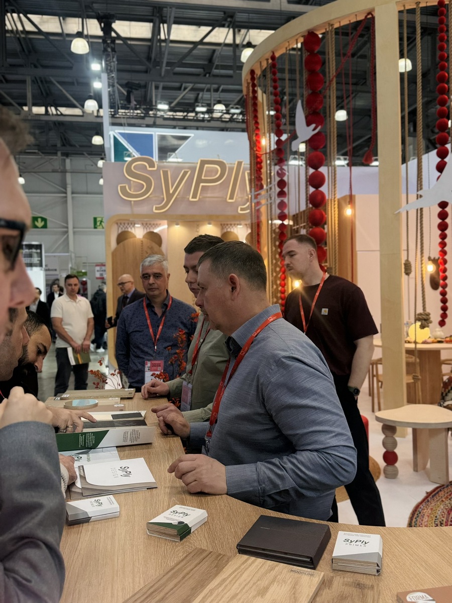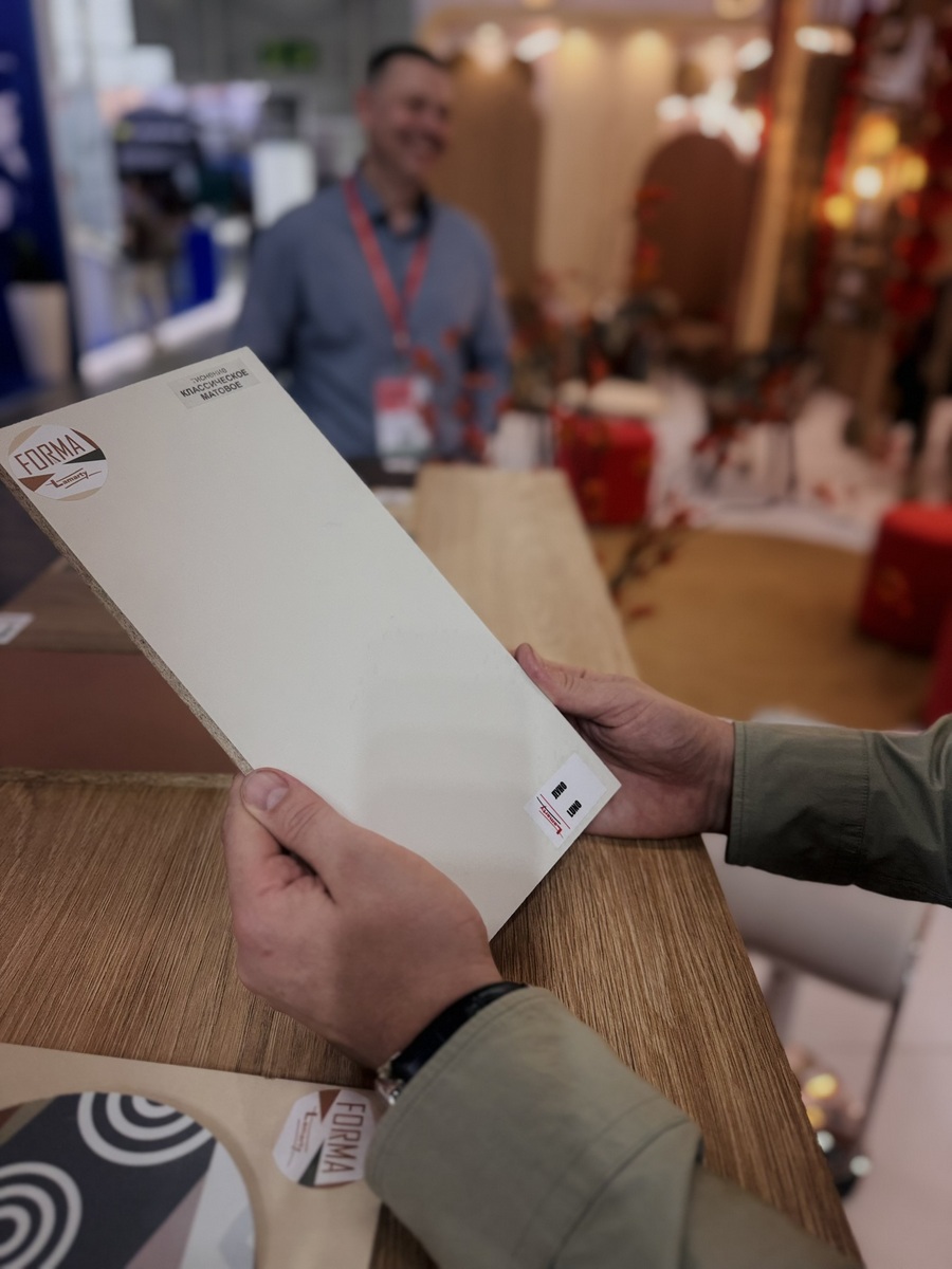 Мы продемонстрировали высокопрочную берёзовую фанеру SyPly, востребованную как в конструкционных задачах, так и в интерьерных решениях. Также представили декоры Lamarty для мебели, сделав акцент на коллекции FORMA — современных решениях, отражающих актуальные тренды дизайна.