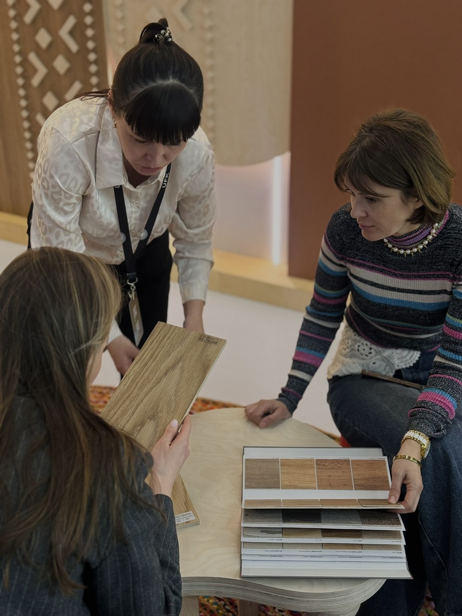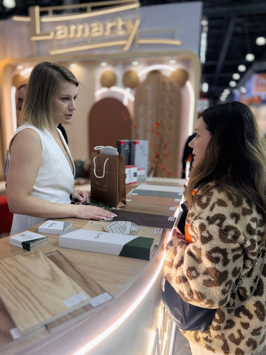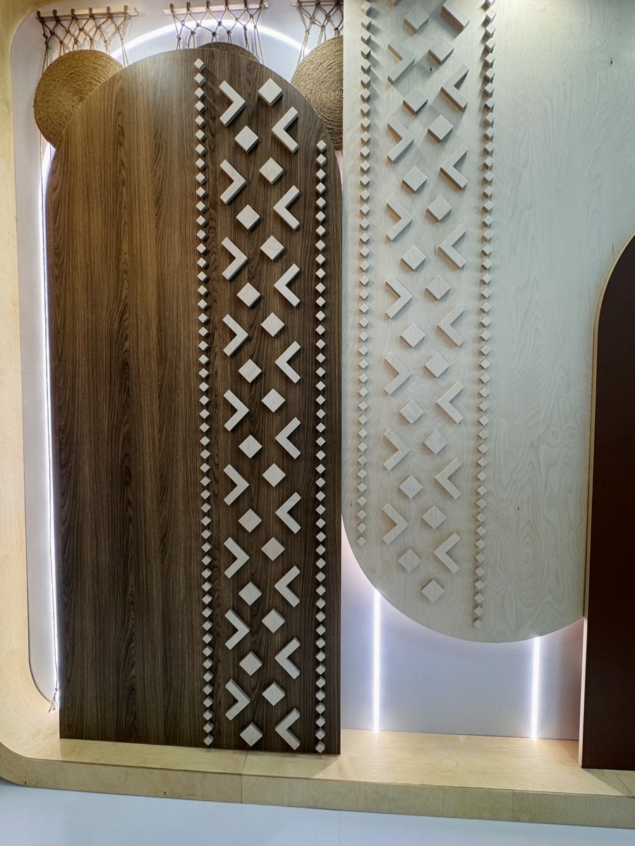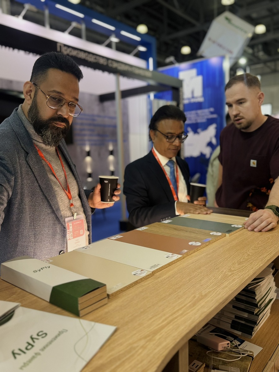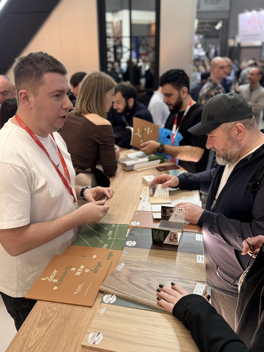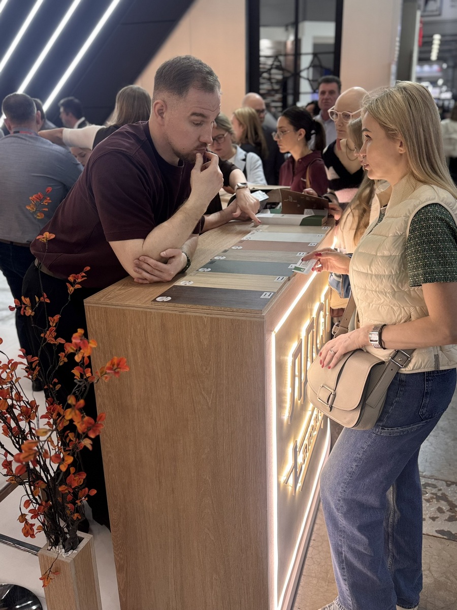 Мы продемонстрировали высокопрочную берёзовую фанеру SyPly, востребованную как в конструкционных задачах, так и в интерьерных решениях. Также представили декоры Lamarty для мебели, сделав акцент на коллекции FORMA — современных решениях, отражающих актуальные тренды дизайна.