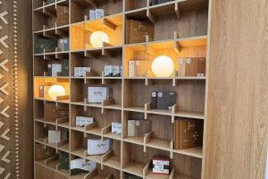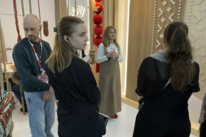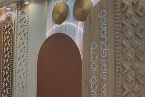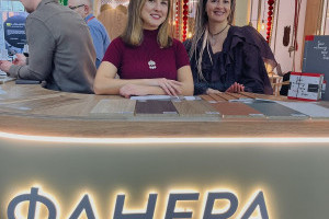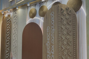 Особое внимание привлекло то, что стенд полностью выполнен из материалов завода. Конструкционные элементы, мебель и часть декоративных решений изготовлены из берёзовой фанеры SyPly и ламинированных ДСП Lamarty, что позволило наглядно продемонстрировать их практическое применение.